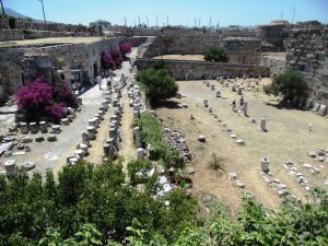 Bu nedenle saatte bir Asklepion’ a giden otobüse atlayıp pirimizin mekanını ziyaret ettik. Asklepion, KOS (İstanköy) şehir merkezinden 5 km mesafede, şehre hakim bir tepe üzerinde kurulmuş. (Otobüs biletini duraktan alırsanız 1,10 €, şoförden alırsanız 1,50 €.)